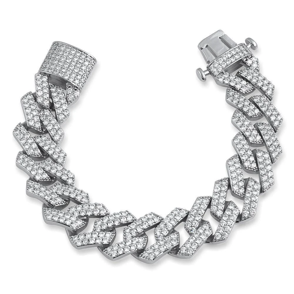 19MM Turkish Cuban Link Iced Out Hip Hop Bracelet. Classic and Unique Style Bling Bling Bracelet. Iced at all angles!!! Incredibly icy with VVS simulated diamond stones lighting up your wrist with the best shine possible. This iced out Bracelet shines like genuine diamonds. All hand setting, no glue. Hand Crafted to look, feel, and Shine Like Genuine Diamond Hip Hop Jewelry. We can custom make in 10K and 14K Solid Gold with Real Diamonds. Shine with the best hip hop jewels in the game.