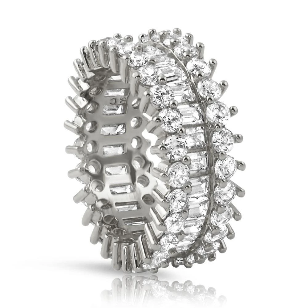 .925 Silver Custom Baguettes CZ Chunky Ice Eternity Bling Bling Ring in Rhodium