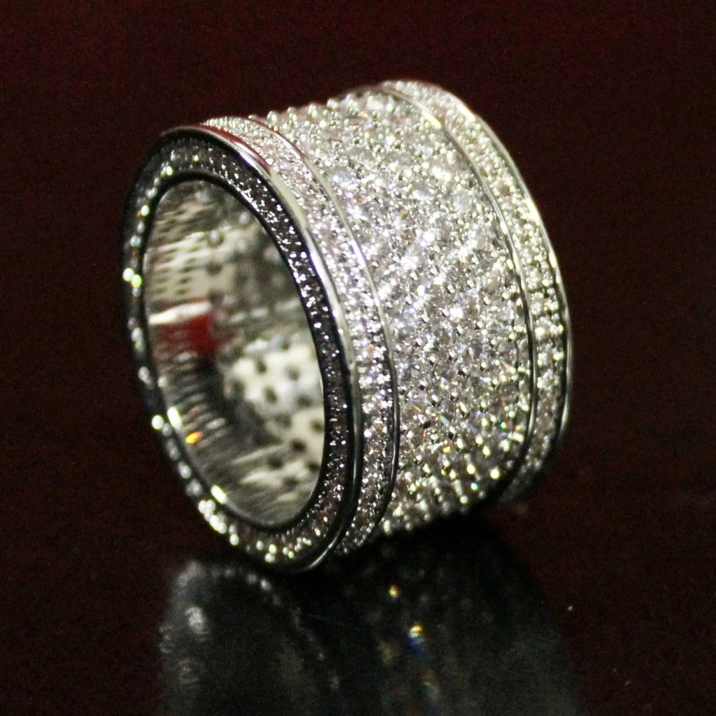.925 Silver Fat 6 Row Eternity Bling Bling CZ Ring in Rhodium