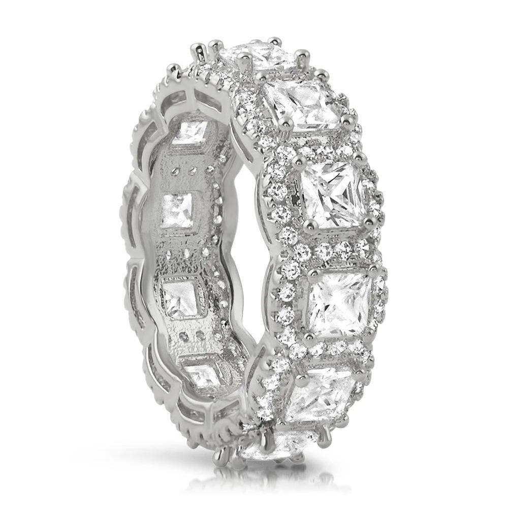 .925 Sterling Silver Princess Cluster Eternity CZ Bling Ring