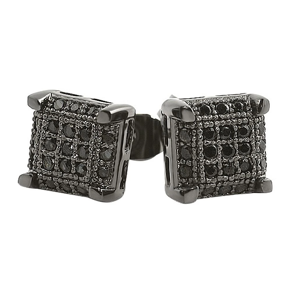 Black CZ Small Cube Micro Pave Earrings. Get the maximum bling bling shine with these iced out earrings. Stones are VVS Simulated Diamonds which are Prong Set and crafted to perfection. Ice up your ears with these amazing hip hop earrings. Order your Hip Hop Bling Earrings today.