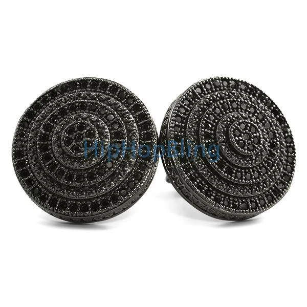 BullsEye Jumbo Bling Bling Earrings Black CZ Micro Pave. Get the maximum bling bling shine with these iced out earrings. Quality crafted with intricate details. Stones are VVS Simulated Diamonds which are Prong Set and designed to perfection. Ice up your ears with these amazing hip hop earrings. Order your Hip Hop Bling Earrings today.