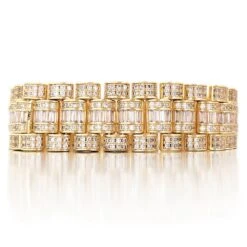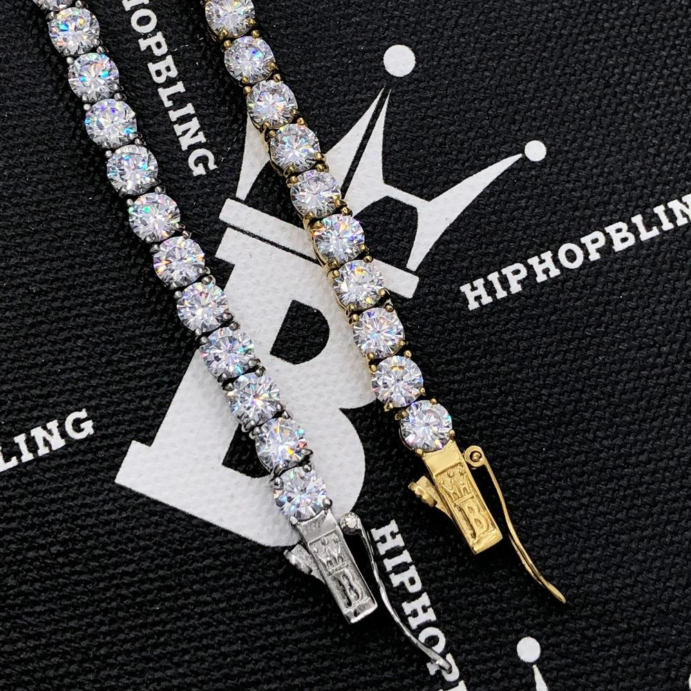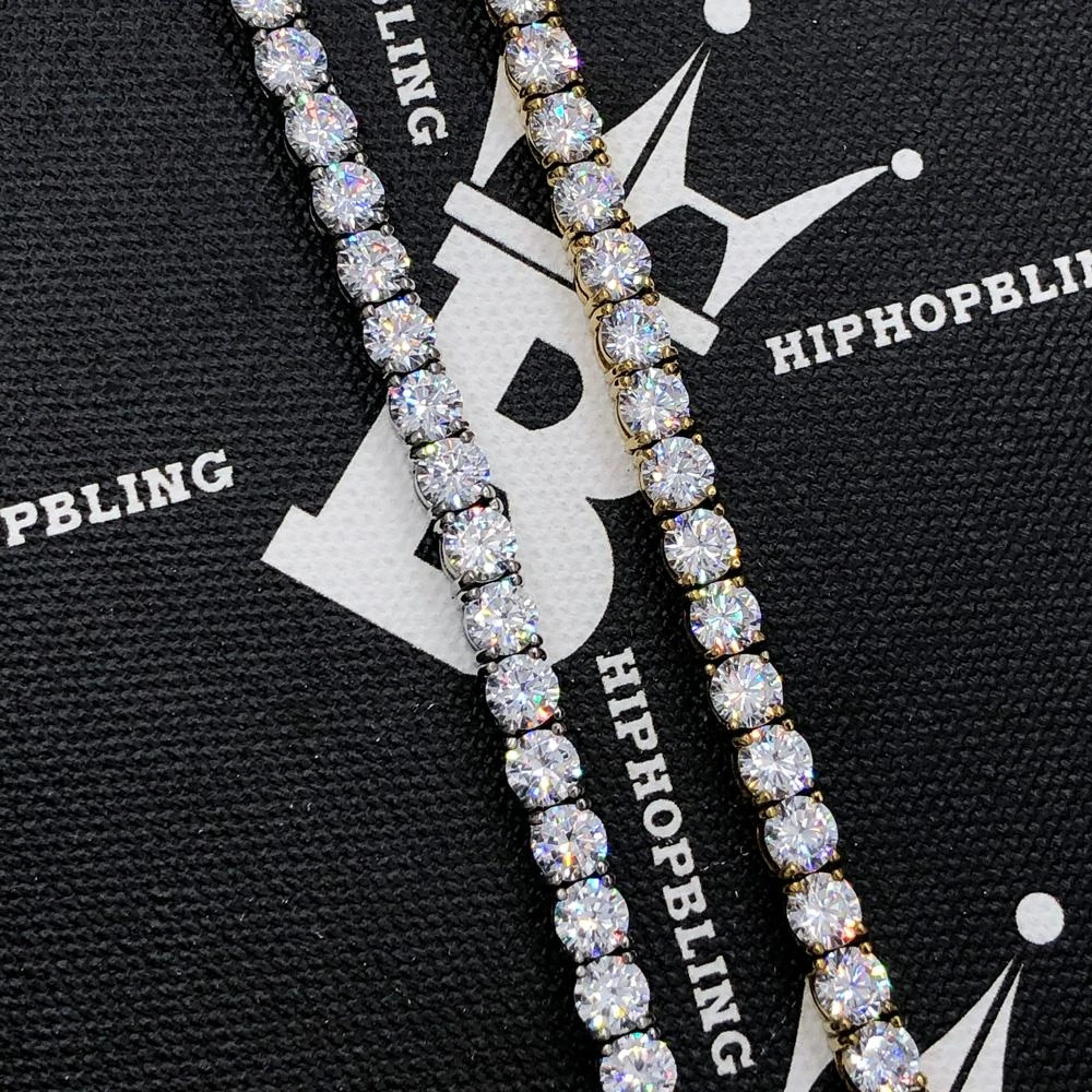 Authentic Looking simulated diamond Tennis Bracelet in White Gold or Yellow Gold Color. Made with a never tarnishing or fading metal to provide the full benefits of White Gold, Yellow Gold Platinum without the cost. Each stone is a 5MM Diameter 1/2 Carat VVS Clarity Simulated Diamond CZ Stone with Ideal stone cutting to maximize the refractive index (bling bling shine) of your iced out Tennis bracelet. The quality of the simulated diamonds shine like a $30,000+ real diamond tennis bracelet. Quality Bust down wristwear that will help you shine your best. Holding side by side with genuine diamonds, there is little to no distinction to a common person. Our parent company manufactures and sells genuine diamond jewelry and we pass on this expertise to make these affordable examples.