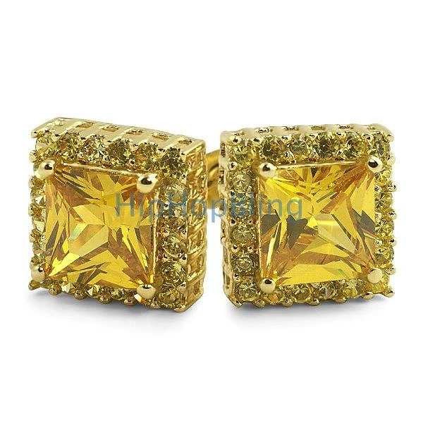 Lemonade Princess Cut CZ Ice Border Bling Bling Earrings. Get the maximum bling bling shine with these iced out earrings. Stones are VVS Simulated Diamonds which are Prong Set and crafted to perfection. Ice up your ears with these amazing hip hop earrings. Order your Hip Hop Bling Earrings today.