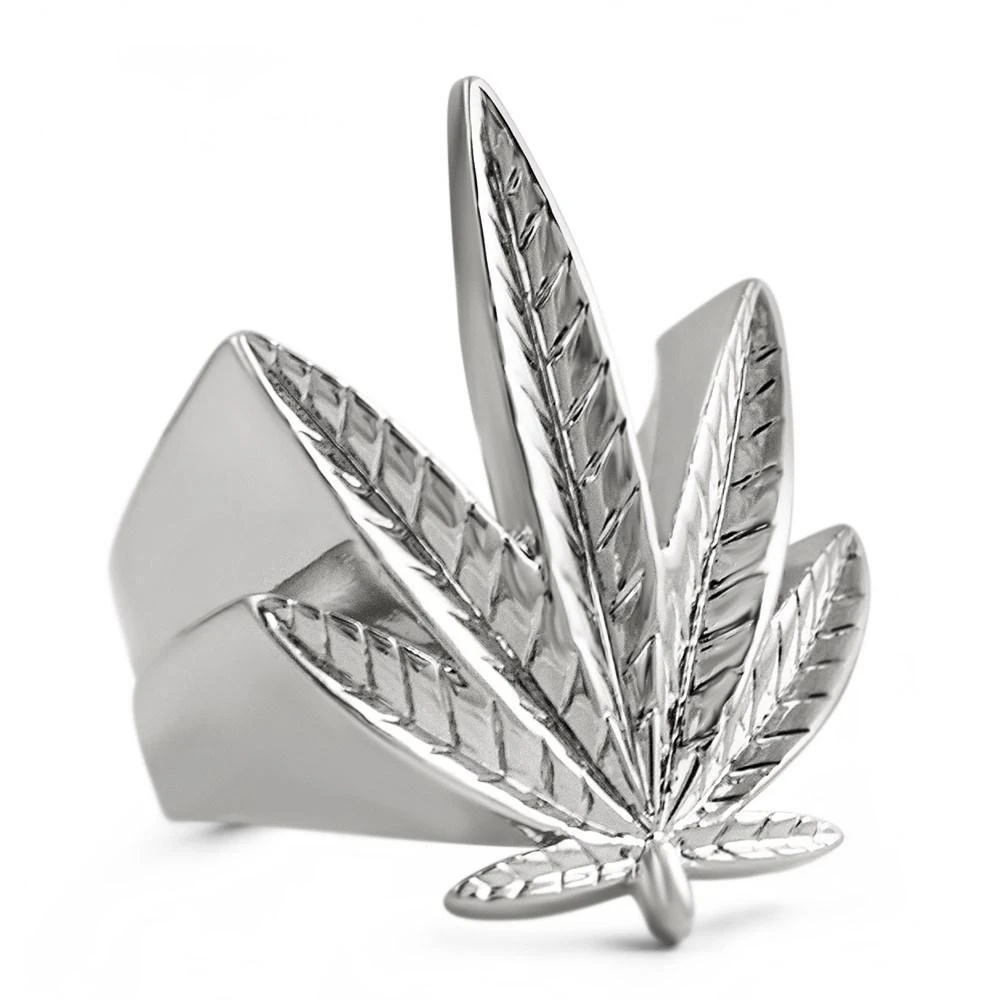 Marijuana Leaf Pot 420 Stoners Rhodium Ring