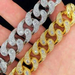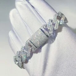 Cuban Moissanite Bracelet Iced Out Lock 15MM .925 Sterling Silver