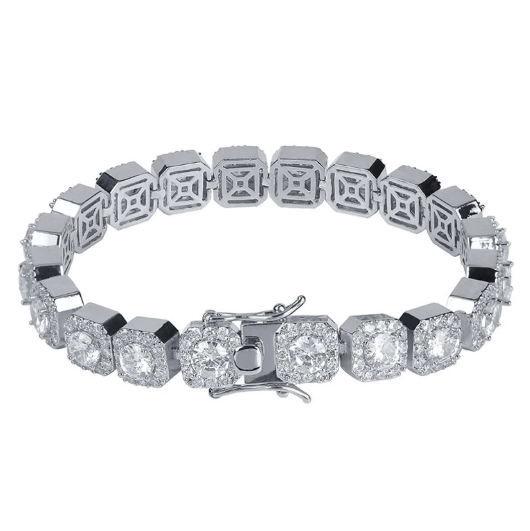 Solitaire Cluster Hip Hop Iced Out Bracelet. Classic and Unique Style Bling Bling Bracelet. Incredibly icy with VVS simulated diamond stones lighting up your wrist with the best shine possible. This iced out Bracelet shines like genuine diamonds. All hand setting, no glue. Hand Crafted to look, feel, and Shine Like Genuine Diamond Hip Hop Jewelry. Shine with the best hip hop jewels in the game.
