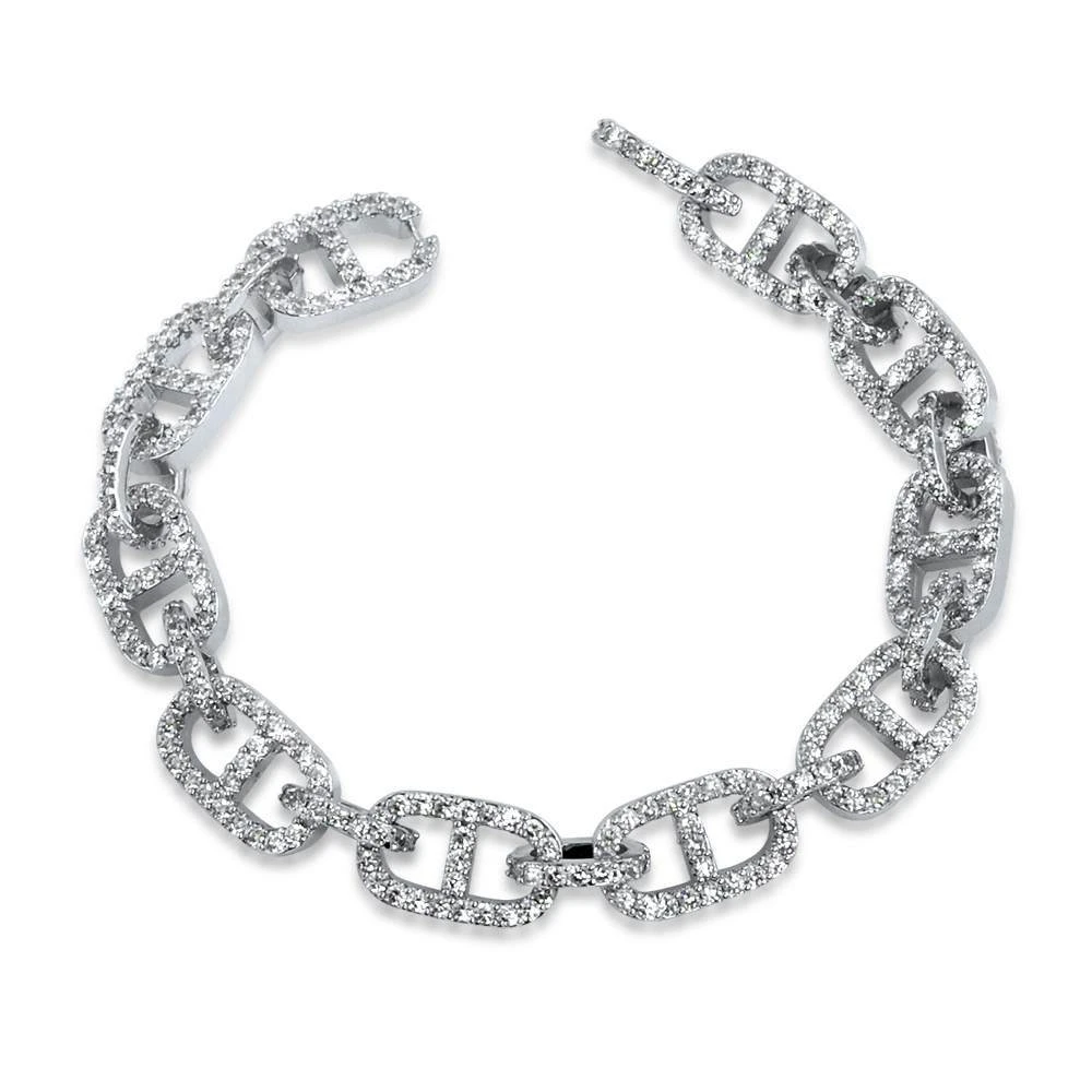 Tennis Mariner Link CZ Iced Out Hip Hop Bracelet. Classic and Unique Style Bling Bling Bracelet. Tennis style setting. Incredibly icy with VVS simulated diamond stones lighting up your wrist with the best shine possible. This iced out Bracelet shines like genuine diamonds. All hand setting, no glue. Hand Crafted to look, feel, and Shine Like Genuine Diamond Hip Hop Jewelry. Shine with the best hip hop jewels in the game.