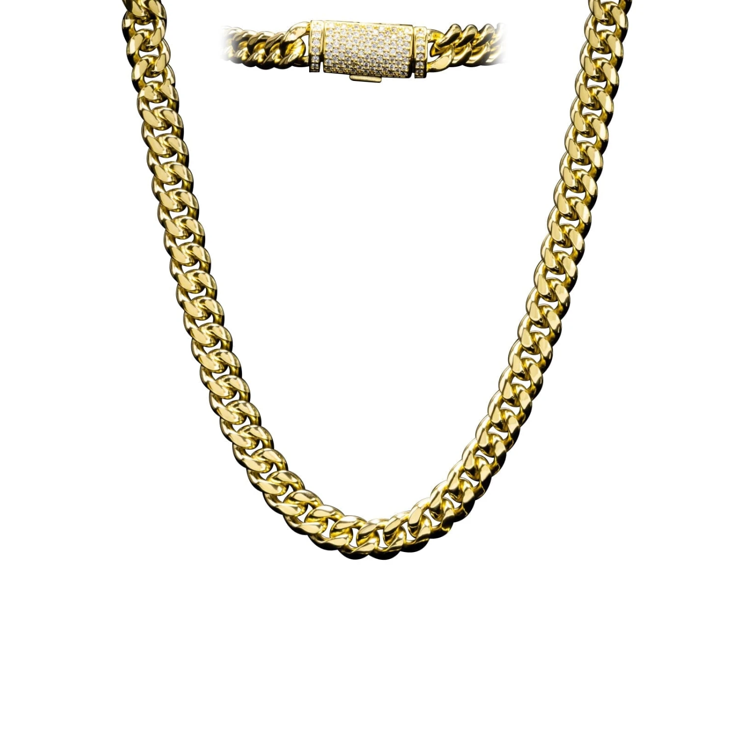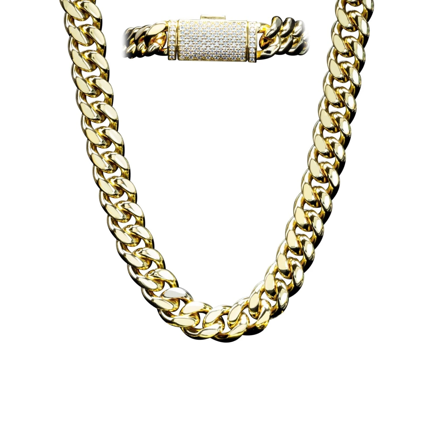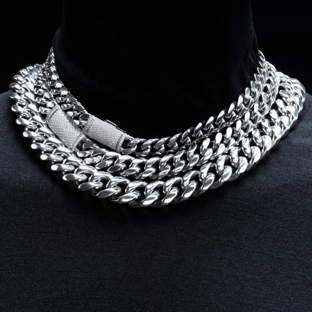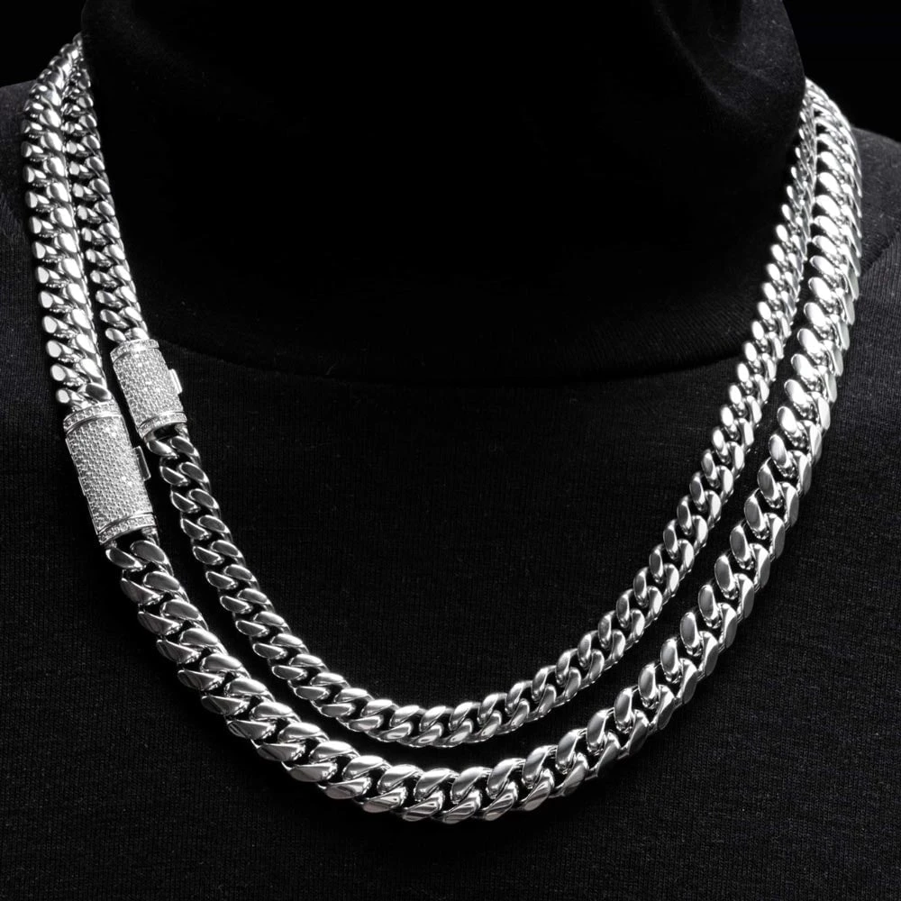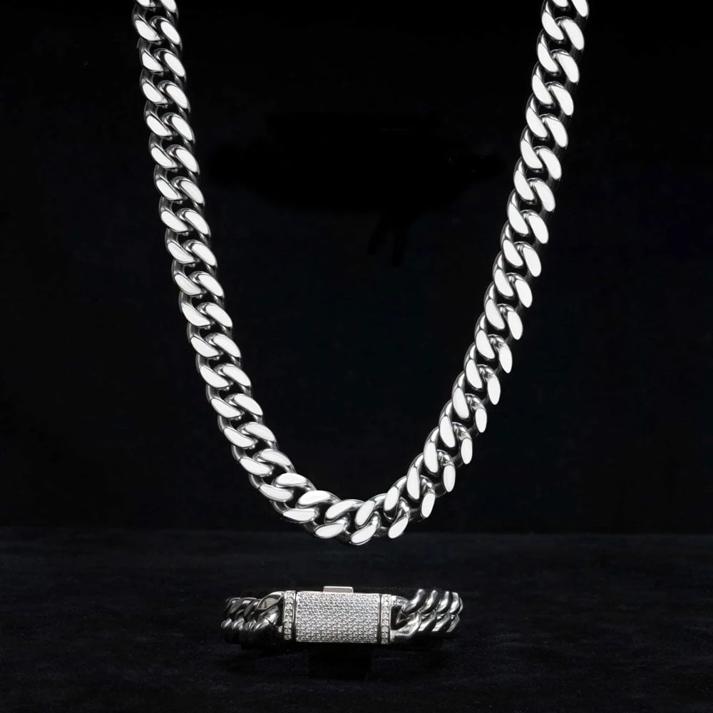 VVS Moissanite Miami Cuban Bracelet Steel / .925 Silver. This Miami Cuban Bracelet is crafted from solid stainless steel with a VVS Moissanite clasp crafted from real .925 Sterling Silver. We insisted on using the finest Moissanite stones available to craft these perfect high end ‘diamond’ Iced Out Cuban Link Bracelets. Moissanite stones are carbon based stones just like real Diamonds*. The benefit of our Moissanite Cuban Link Bracelets are that you get a better shine for much less money. Our Moissanite Stones have a higher refractive index than real Diamonds and rank 9.5 on Mohs hardness scale.
