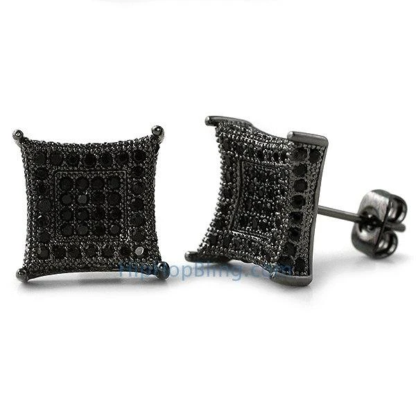 XL 3D Box Kite Black CZ Bling Bling Earrings
