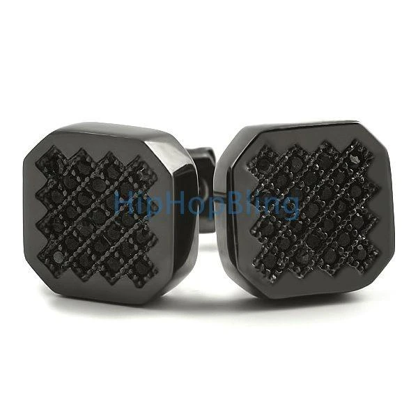 Zig Zag Iced Out Black CZ Micro Pave Earrings. Get the maximum bling bling shine with these iced out earrings. Quality crafted with intricate details. Stones are VVS Simulated Diamonds which are Prong Set and designed to perfection. Ice up your ears with these amazing hip hop earrings. Order your Hip Hop Bling Earrings today.